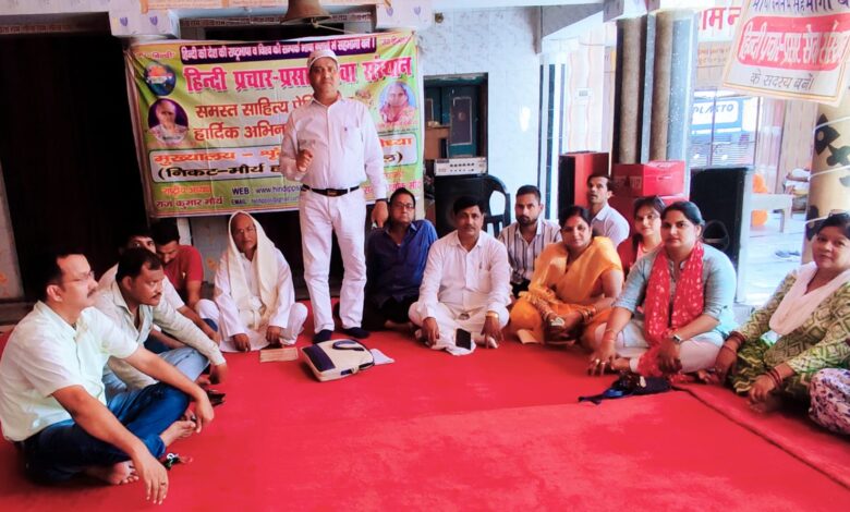 हिंदी को राष्ट्रभाषा घोषित किए बिना देश की सभ्यता व संस्कृति सुरक्षित नहीं, हिंदी से ही हमारे अस्मिता की पहचान है, हिंदी के बिना संपूर्ण और समृद्ध राष्ट्र की कल्पना अधूरी है उक्त वक्तव्य आज श्रृंगारहाट अयोध्या स्थित रघुनाथ भवन वैद जी के मंदिर में हिंदी प्रचार प्रसार सेवा संस्थान की बैठक की अध्यक्षता करते हुए समाज सेवी कबीर मठ विज्ञान आश्रम मुहाबरा बाजार अयोध्या के यशस्वी महंत केशव दास जी ने व्यक्त किया,उक्त अवसर पर उन्होंने कहा कि हिंदी ही हमारे सनातन धर्म व संस्कृति की संवाहक है, बैठक को संबोधित करते हुए संस्थान के डाo बाबू राम मौर्य ने कहा कि हिंदी के राष्ट्रभाषा बने बिना भारत देश अधूरा है, संस्थान के उपाध्यक्ष विंध्यवासिनी शरण पांडिया ने कहा कि आगामी 14 सितंबर हिंदी दिवस के पावन पर्व पर संस्थान द्वारा तुलसी स्मारक भवन (रानी बाजार चौराहा) अयोध्या में संगोष्ठी, सम्मान समारोह व सांस्कृतिक आयोजन किए गए हैं जिसमें आप लोग पूरी सहभागिता निभाईये। बैठक का संचालन करते हुए संस्थान के राष्ट्रीय महामंत्री डॉ0 सम्राट अशोक मौर्य ने आए हुए सभी साहित्य प्रेमियों का आभार प्रकट होते हुए अपील की कि आगामी 14 सितम्बर के कार्यक्रम को तन मन धन से जुट कर सफल बनावें जिससे अयोध्या की धरती से देश को एक सशक्त संदेश जाए और हिंदी देश की राष्ट्रभाषा व विश्व की संपर्क भाषा बन सके, जिससे हमारी संस्कृति और सभ्यता सुरक्षित रह सके। समारोह को सुव्यस्थित संचालित करने के लिए विभिन्न समितियां गठित करने का प्रस्ताव भी मंजूर किया गया, जिसमें प्रमुख रूप से सम्मान समारोह की प्रतिभाओं को चुनने के लिए समिति गठित करने का निर्णय लिया गया l