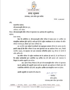 उत्तर प्रदेश युवा कांग्रेस के उपाध्यक्ष शरद शुक्ला ने आज एक बड़ा सवाल उठाते हुए श्रीरामजन्मभूमि तीर्थ क्षेत्र ट्रस्ट के महासचिव को पत्र लिखकर मंदिर परिसर में सुंदरकांड पाठ आयोजन की अनुमति मांगी है। शरद शुक्ला ने यह पत्र राष्ट्रीय स्वयंसेवक संघ द्वारा श्रीराम जन्मभूमि मंदिर परिसर में आयोजित हुए एक कार्यक्रम के बाद जारी ट्रस्ट महासचिव को भेजा है। बताते चलें कि राष्ट्रीय स्वयंसेवक संघ द्वारा श्रीराम जन्मभूमि मंदिर परिसर में आयोजित कार्यक्रम में ट्रस्ट महासचिव चंपत राय स्वयं उपस्थित थे।
