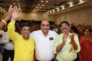 सनातन संस्कृति के प्रबल प्रतिनिधि पूज्य साईं महेश लाल,सनी सांई,संत भावन दास,संत महेंद्र सांई,महाराज स्वामी पं तारकेश्वर शर्मा,पं सुरेश शर्मा व कपिल सांई के साथ साथ समाज के मुखियागणों रोशन तोलानी, देवकुमार क्षेत्रपाल, धर्म पाल रावलानी,हरीश मंधाण, अशोक सुखी आदि का स्वागत कमेटी के रमेश मदान, सुरेश पंजवानी, कन्हैयालाल सागर, अजीत मेघानी,राम मोटवानी, आम प्रकाश ओमी,जय आहूजा, विक्रम आहूजा,हरीश सावलानी, आदि द्वारा भगवान चित्रित पट्टिका पहना कर किया गया।