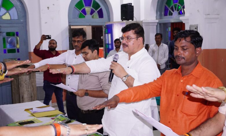 मंगलवार को नगर निगम परिसर स्थित तिलक हाल में महापौर महंत गिरीशपति त्रिपाठी ने पार्षदों एवं कर्मचारियों को स्वच्छता की शपथ दिलाई। इसी के साथ आगामी दो अक्टूबर तक चलने वाले स्वच्छता पखवाड़ा कार्यक्रम का आगाज हुआ।