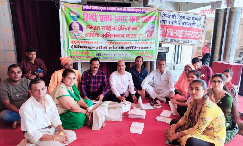 हिंदी को पूर्ण आत्मसात किए बिना देश का वास्तविक विकास असंभव, हिंदी से ही हमारे अस्मिता की पहचान है, हिंदी के बिना संपूर्ण और समृद्ध राष्ट्र की कल्पना अधूरी है उक्त वक्तव्य आज श्रृंगारहाट अयोध्या स्थित रघुनाथ भवन वैद जी के मंदिर में हिंदी प्रचार प्रसार सेवा संस्थान की एक तैयारी बैठक की अध्यक्षता करते हुए समाज सेवी व यादव समाज सेवा ट्रस्ट के प्रदेश अध्यक्ष राजकुमार यादव “राजा भैया” ने व्यक्त किया,उक्त अवसर पर उन्होंने कहा कि हिंदी से ही हमारे देश का समग्र विकास सम्भव है,बैठक को संबोधित करते हुए संस्थान के प्रदेशअध्यक्ष दिनेश कुमार सिंह “वत्स”ने कहा कि हिंदी के राष्ट्रभाषा बने बिना भारत देश गूंगे के समान है,संस्थान के संरक्षक मंडल सदस्य व “साहित्य सम्राट” पत्रिका के सह संपादक राम केर सिंह ने कहा कि आगामी 14 सितंबर हिंदी दिवस के पावन पर्व पर संस्थान द्वारा तुलसी स्मारक भवन (रानी बाजार चौराहा) अयोध्या में संगोष्ठी,सम्मान समारोह व सांस्कृतिक आयोजन किए गए हैं,जिसमें आप लोग पूरी सहभागिता निभाईये।