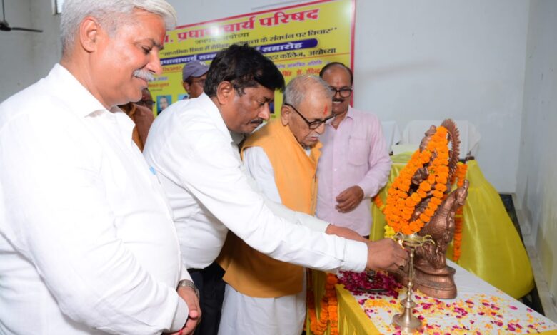 उत्तर प्रदेश प्रधानाचार्य परिषद की संगोष्ठी और विदाई व सम्मान समारोह बुधवार को शहर के एसएसवी इंटर कॉलेज में आयोजित हुआ। मंडल के उप शिक्षा निदेशक व देवीपाटन मंडल के संयुक्त शिक्षा निदेशक डॉ.ओम प्रकाश गुप्ता जी ने इस दौरान कहा कि शिक्षा के स्तर को बनाए रखना सभी का कर्तव्य ही नहीं वरन जिम्मेदारी भी है। यह जिम्मेदारी प्रधानाचार्य के कंधों पर सर्वाधिक होती है। डॉ.गुप्त समारोह को बतौर मुख्य अतिथि सम्बोधित कर रहे थे।