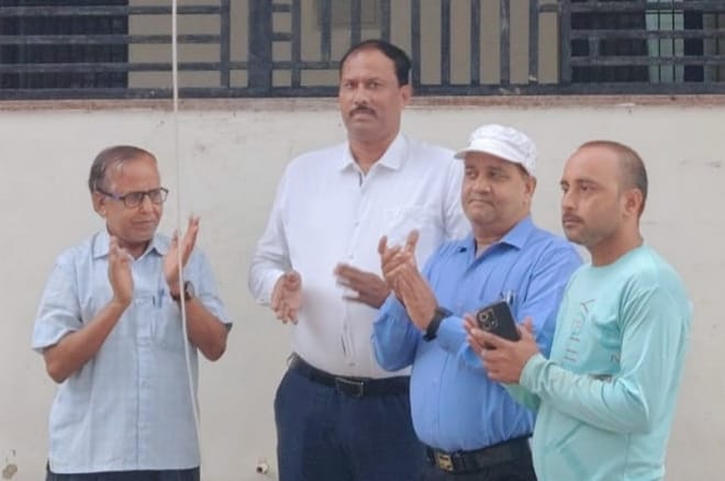 अंतरराष्ट्रीय मीडिया सेंटर में जिला सूचना अधिकारी श्री संतोष कुमार द्विवेदी जी ने किया झंडारोहण