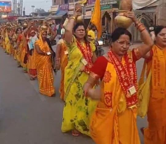 श्री राम जन्मभूमि मन्दिर यज्ञशाला तक मातृशक्तियों ने निकाली कलश यात्रा