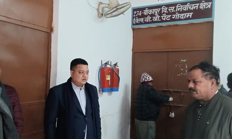 जिलाधिकारी निखिल टीकाराम फुंडे ने आज कलेक्ट्रेट स्थित ई0वी0एम0 एवं वी0वी0 पैट वेयर हाउस का निरीक्षण किया। निरीक्षण के दौरान कंट्रोल रूम, स्ट्रांग रूम, रिजेक्टेड यूनिट कक्ष, वीवीपैट कक्ष, सी.सी.टी.वी. कैमरा, सुरक्षा व्यवस्था का अवलोकन किया। उक्त वेयर हाउस में विधानसभा निर्वाचन क्षेत्रों की ई0वी0एम0/वी0वी0 पैट मशीने लॉक के अन्दर संरक्षित हैं। जिलाधिकारी द्वारा ई0वी0एम0 व वी0वी0 पैट वेयर हाउस/स्ट्रांग रूम निरीक्षण के दौरान निर्देशित किया कि सुरक्षा के दृष्टिगत स्ट्रांग रूम की सभी व्यवस्थाएं सुनिश्चित की जाय। इस अवसर पर मान्यता प्राप्त राजनीतिक दलों के प्रतिनिधि व जिला निर्वाचन कार्यालय के स्टाफ गण उपस्थित रहे।