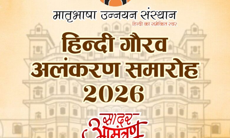 प्रतिवर्षानुसार इस वर्ष भी मातृभाषा उन्नयन संस्थान का प्रतिष्ठा प्रसंग ‘हिन्दी गौरव अलंकरण 2026’ फ़रवरी माह में आयोजित होने जा रहा है