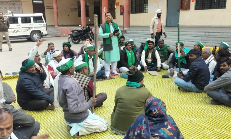 मन्शाराम वर्मा द्वारा बीकापुर तहसील परिसर में किए जा रहे हैं आमरण अनशन के समर्थन में भारतीय किसान यूनियन द्वारा आयोजित किसान महापंचायत पर अधिकारियों के न पहुंचने पर भारतीय किसान यूनियन कार्यकर्ताओं पदाधिकारियों ने जोरदार प्रदर्शन करते हुए उप जिला अधिकारी का घेराव किया और उप जिला अधिकारी कार्यालय के समक्ष पंचायत शुरू कर दिया किसान पंचायत में उप जिला अधिकारी श्रेया, तहसीलदार दिनेश कुमार,नायब तहसीलदार घनश्याम शुक्ला, नायब तहसीलदार रामखेलावन नगर पंचायत की अधिशासी अधिकारी अंजू यादव, अध्यक्ष नगर पंचायत श्री राकेश कुमार राणा पहुंचकर बिन्दुवार समस्याओं पर चर्चा करते हुए कुछ समस्याओं का त्वरित निदान किया |