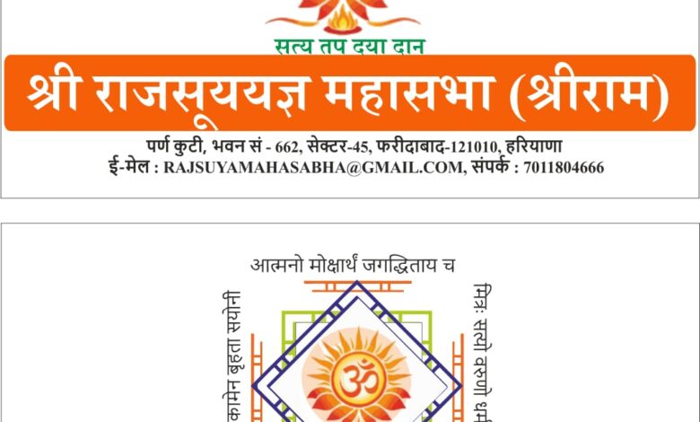 “श्रीराम” (श्रीरामराजपुनर्निर्माणार्थ राजसूय महायज्ञ) का आयोजन मई 2026 अयोध्या में- उत्तर प्रदेश में होने जा रहा है।